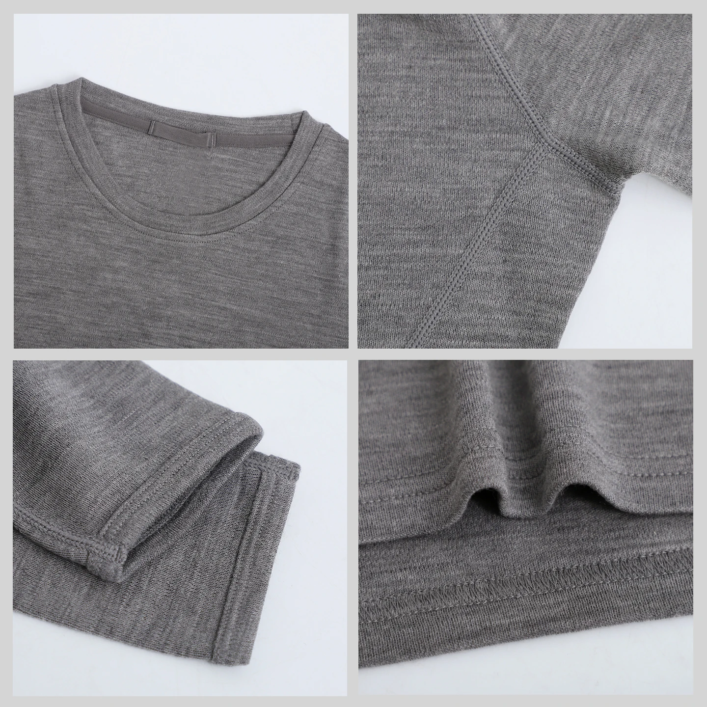 250Gsm Women's 100% Merino Wool Base Layer Shirt Merino Wool Thermal Underwear Long Sleeve Shirts Warm Wicking Anti-Odor